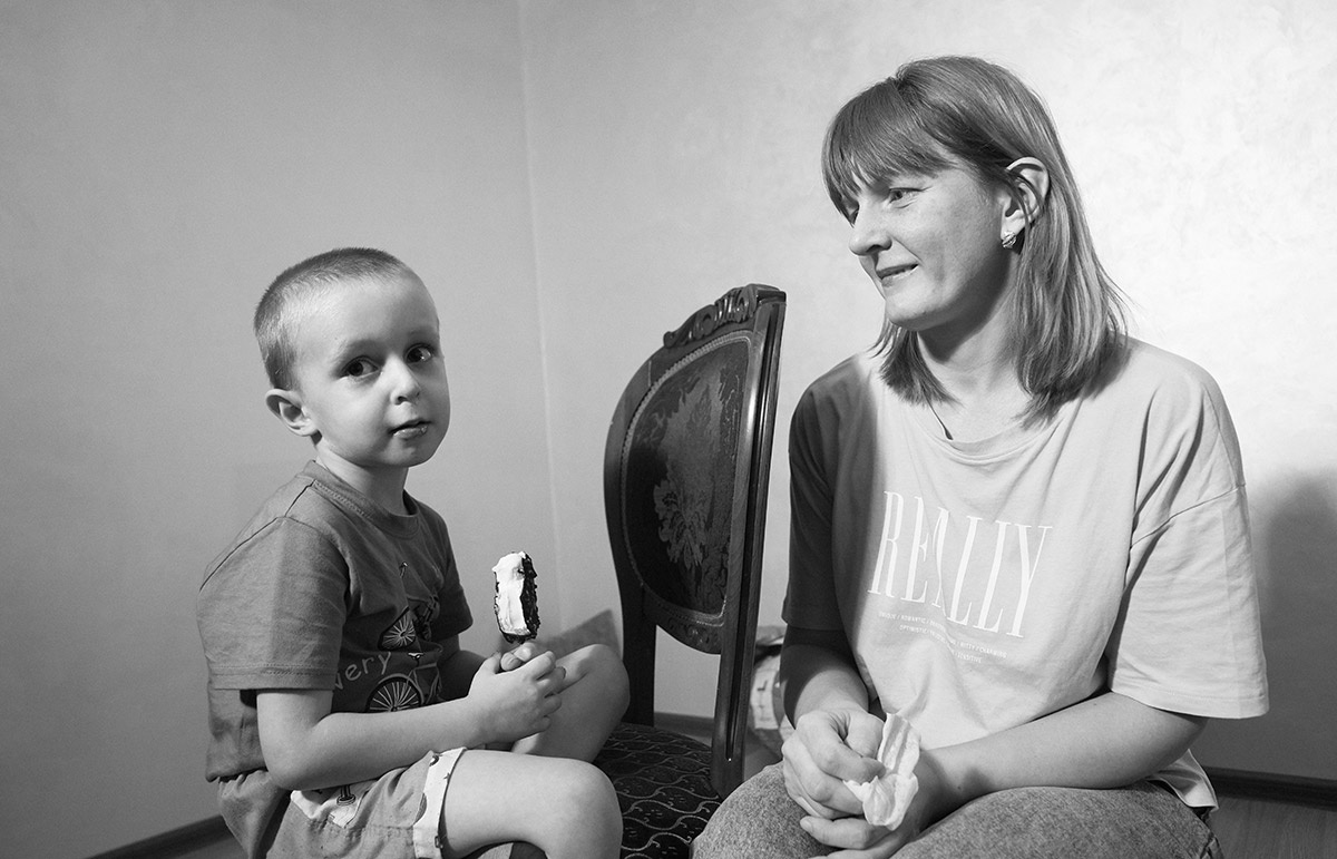 Чтобы мы могли спокойно поговорить, старший четырнадцатилетний Илья согласился посидеть с четырехлетним братом, живчиком Мишей. Но после пяти минут тишины из комнаты раздается грохот и лай собаки Фроси. Елена, смущаясь, выходит посмотреть на детей.