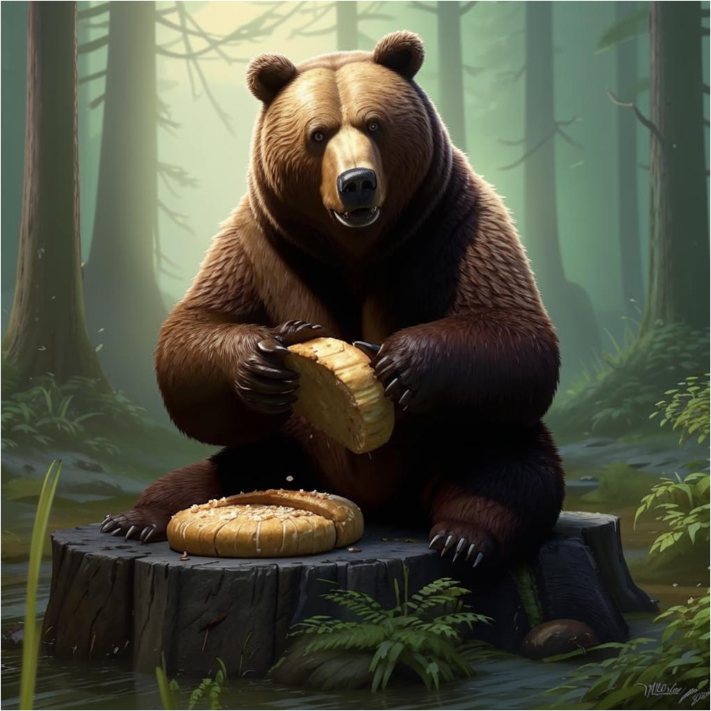 Ну и конечно я вылезла посмотреть, зря я это. Передо мной сидел на пне медведь и перебирал что-то в корзине.