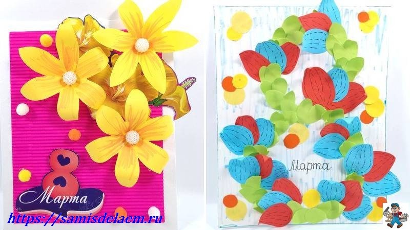 Как сделать открытку с цветами к 8 марта