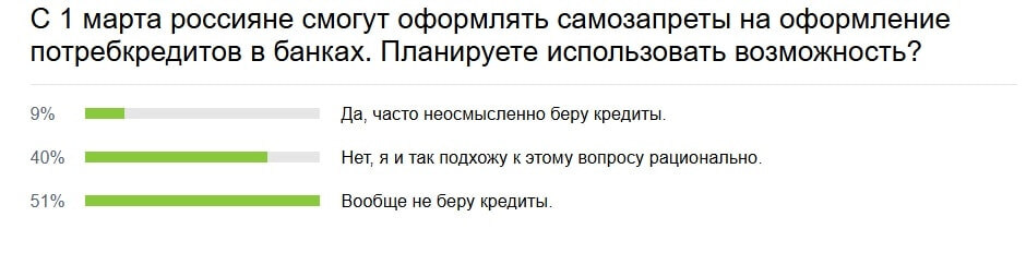 Так, 51% ответили, что вообще не берут кредиты. 40% это не нужно, так как они, по собственному признанию, рационально подходят к вопросу займов. И лишь 9% признались, что им эта функция будет необходима, так как они часто необдуманно берут кредиты.