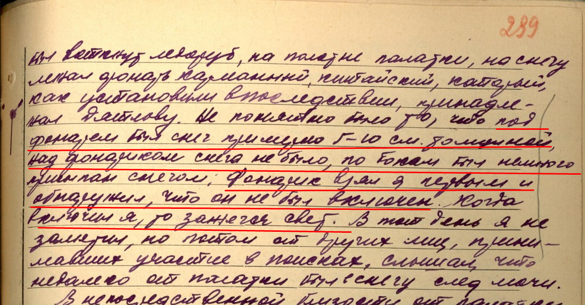 Фонарь, который лежал на палатке группы Дятлова был выключен