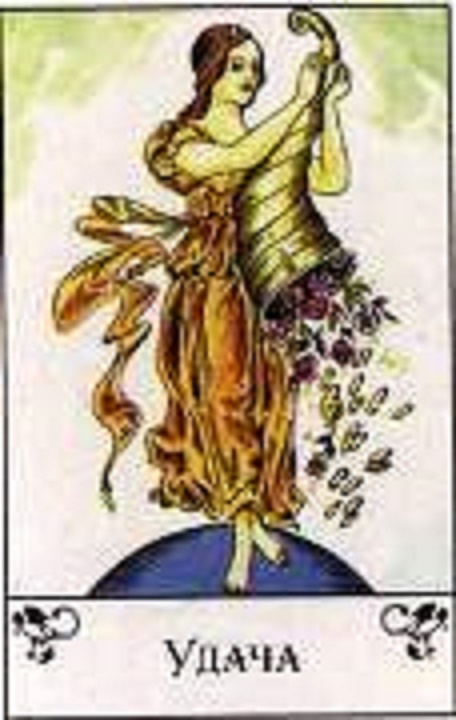 Карта Удача это карта колоды, которая обозначает удачное стечение обстоятельств, счастье, удачу. Цыганская карта «Удача» предвещает положительные события и обычно является предвестником счастья. Однако в редких случаях она может указывать на неблагоприятные события. Это может быть знаком грядущих трудностей, которые невозможно предвидеть заранее. Они могут прийти из неожиданного источника. Это может быть предательство близкого человека, внезапный конфликт или неудача в деле, которое казалось почти завершённым. Однако такие ситуации встречаются редко. Обычно карта «Удача» указывает на то, что скоро вас ждёт вдохновение и радость. Проблемы, которые вас беспокоили, разрешатся, и часто даже без вашего участия. Вы почувствуете эмоциональный подъём, который позволит вам свернуть горы. Во всех ваших начинаниях вам будет сопутствовать успех, госпожа удача будет улыбаться вам и освещать ваш путь. Отношения, которые, возможно, продлятся всю жизнь. Есть шанс встретить свою вторую половинку. Не у