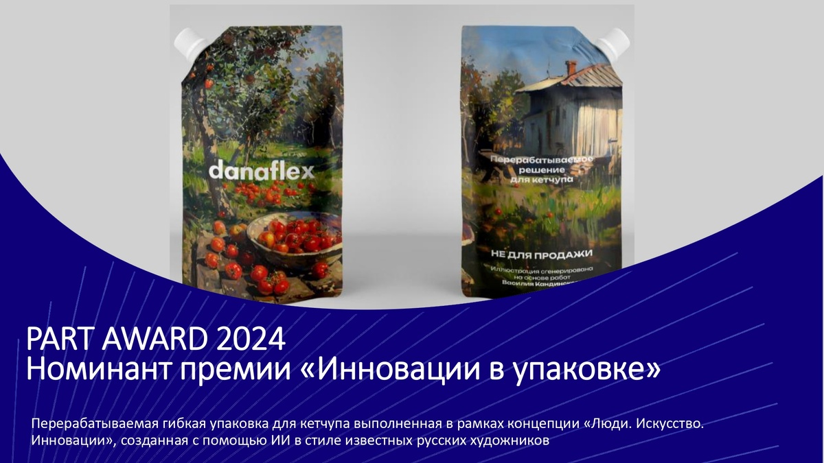 Danaflex представил решение из мономатериалов на ежегодную международную Премию в области производства и дизайна упаковки PART Award 2024 R&D и маркетинг Danaflex создали перерабатываемую гибкую упаковку типа дойпак – альтернативу стандартным решениям с фольгой с сохранением всех механических и барьерных свойств. Упаковка была создана в рамках концепции "Люди.Искусство.Инновации" и дизайн был разработан в помощью искусственного интеллекта в стилистике известных художников. Решение представлено на суд экспертного жюри ежегодной международной премии в области производства и дизайна упаковки PART Award 2024 Упаковка типа дойпак – это вид гибкой упаковки, используемой для хранения и продажи продуктов питания и непродовольственных товаров. Эти пакеты изготовлены из нескольких слоев материалов, таких как полипропилен и полиэтилен, которые вместе обеспечивают барьер от влаги, света и воздуха, помогая сохранить свежесть содержимого в течение всего срока годности. Разработанная структура успеш