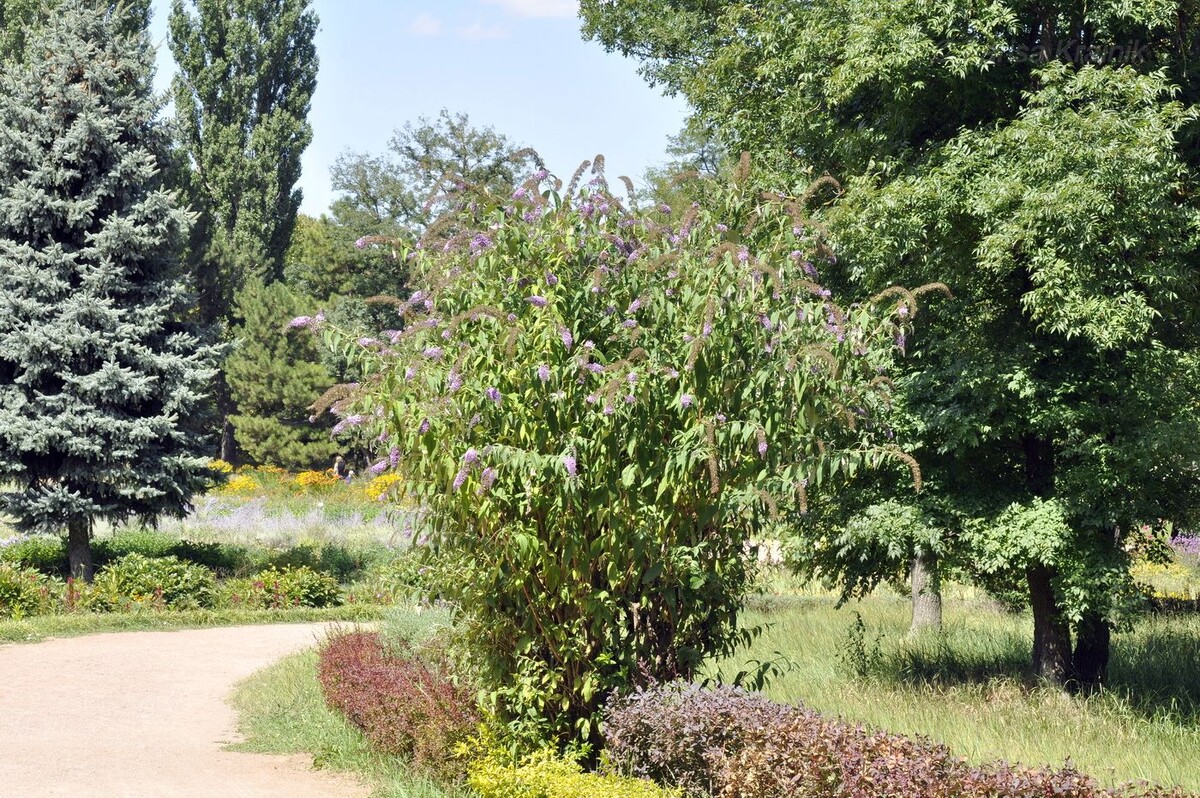 Буддлея Давида (Buddleja davidii), также известная как "куст бабочек", — это листопадный кустарник, который славится своими яркими, ароматными соцветиями, привлекающими бабочек и других насекомых-опылителей. Она принадлежит к семейству Норичниковые (Scrophulariaceae) и родом из Китая. Буддлея Давида широко культивируется по всему миру благодаря своей декоративности и неприхотливости. Листья буддлеи Давида — ланцетные, длиной 10-25 см, с заостренными кончиками. Они темно-зеленые сверху и серовато-зеленые снизу, с легким опушением. Кора у буддлеи Давида серо-коричневая, с возрастом становится более грубой и покрывается мелкими трещинами. Ветки тонкие, гибкие, с легким опушением. Цветет буддлея Давида с июля по октябрь. Цветы мелкие, собраны в длинные (до 30 см) метельчатые соцветия, которые могут быть белыми, розовыми, фиолетовыми, синими или пурпурными в зависимости от сорта. Цветы имеют сильный, медовый аромат, который привлекает бабочек, пчел и других насекомых-опылителей. Плоды — мел