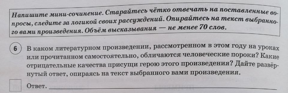 В каком литературном произведении, рассмотренном в этом году на уроках или прочитанном самостоятельно, обличаются человеческие пороки?