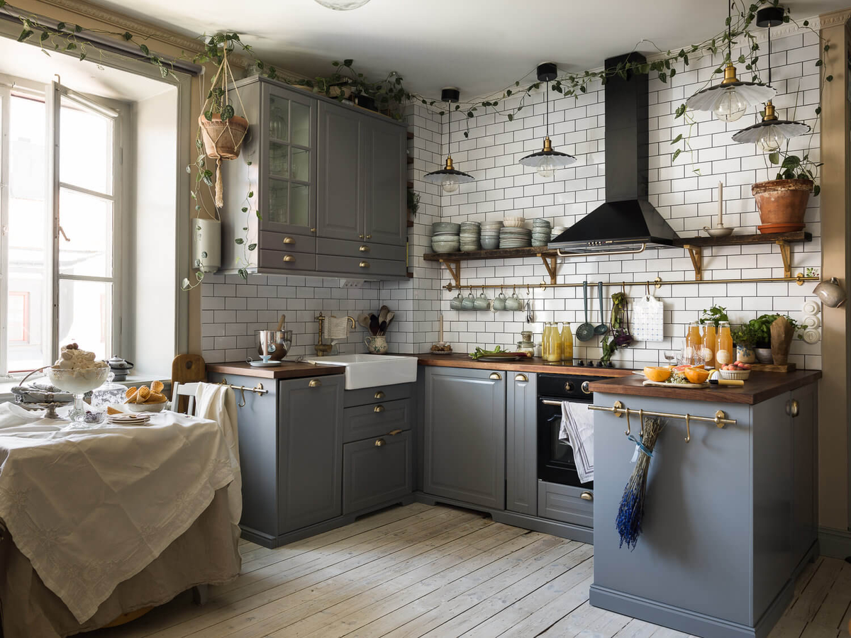 Сегодня мы заглянем в квартиру, где ремонт — это не просто обновление интерьера, а настоящее исследование. Хозяева подняли потолки, открыли оригинальные полы, скрытые под линолеумом, и вернули дверям 1900-х их историческую элегантность. Это пространство в доме эпохи ар-нуво, расположенном в районе Аспудден, Стокгольм, площадью всего 55 квадратных метров, но каждое его сантиметр наполнен историей. Кухня: Икеа и антиквариат Кухня начинается с интересного сочетания: шкафы от Икеа, дополненные латунными ручками и столешницей из ореха. Белый кафель с темными швами добавляет глубины. Главный акцент — полка из доски, найденной на чердаке, с латунными рейками для кружек. Это решение выглядит так, будто всегда было частью интерьера. Вместо барной стойки — широкое окно с видом на крыши. Здесь стоит стол, за которым, вероятно, пьют кофе и обсуждают, куда разместить очередной горшок с растением. Кстати, зелени здесь столько, что можно открыть филиал ботанического сада. Гостиная: диван с характером