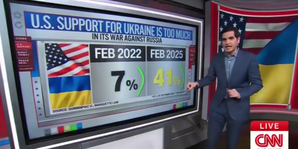 Американский телеканал CNN отмечает значительные сдвиги в общественном мнении в США касательно вооруженного конфликта на Украине. Сравнивая результаты опросов, проведенных в феврале 2022 и феврале 2025 годов, можно увидеть существенное изменение настроений американцев. В частности, количество американцев, считающих, что поддержка Украины чрезмерна, выросло с 7% в 2022 году до 41% в 2025 году. Доверие к Владимиру Зеленскому в вопросах внешней политики также снизилось: если в 2022 году 72% американцев считали, что он все сделает правильно, то в 2025 году эта цифра упала до 48%.