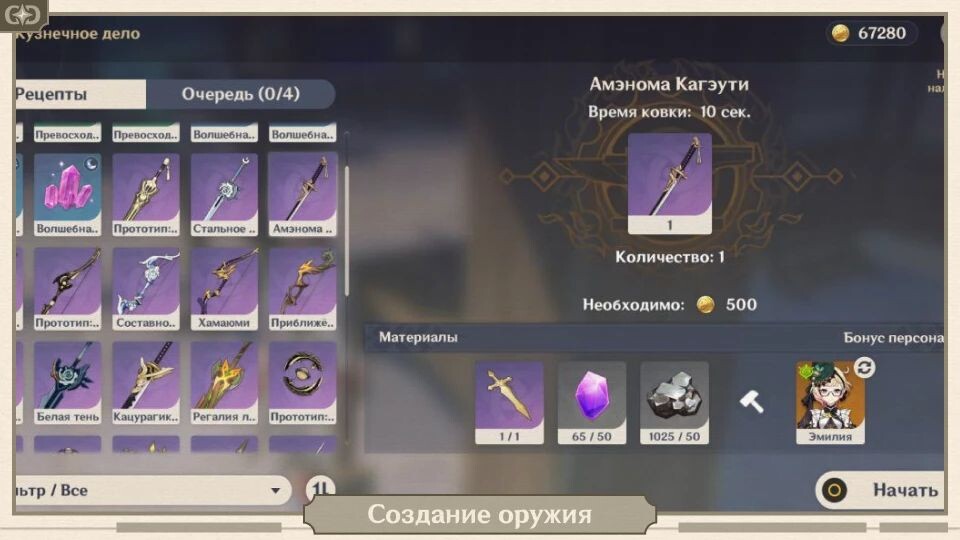 ㅤКак и любое крафтовое оружие, оружие Инадзумы можно создать у любого кузнеца в игре. Для этого необходимо иметь рецепт крафта и соответствующие ресурсы. Особенность инадзумской серии в том, что получение рецептов напрямую связано с прохождением заданий в этом регионе, что существенно осложняет их приобретение.