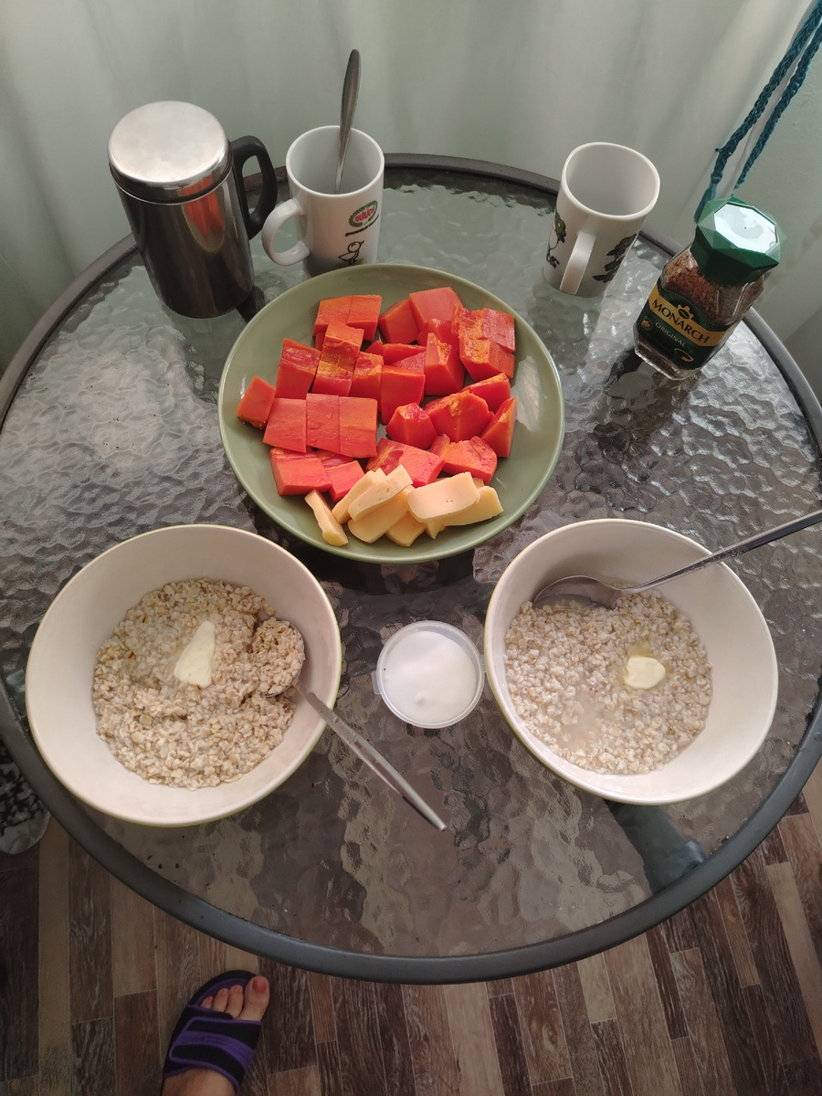 Завтрак сегодня у нас был русско-тайский. Заварили привезенный геркулес, заправили своим маслом, нарезали сыр и купленную вечером папайю. Это было так вкусно - каша, которую уже не ели несколько дней, с кусочками спелой и сладкой папайи. К сыру даже не притронулись. И сразу после завтрака на море. Шезлонги брать не стали, как и другие, расположились на песке в тени дерева. По небу ходят тучки, похоже, дождь будет опять. Но пока погода хорошая и накупались всласть. Вода теплая, но немного мутная, слабая волна гонит немного пены и иногда проплывают некусучие медузки. Но если на это внимания не обращать, то поплавала я с удовольствием. Да и заход в море по песку, это не то, что по гальке в Абхазии или Лазоревском. Намного приятнее. Накупавшись, отправились к себе в номер, и заблудились. Прошли мимо своей сойки (сои - так называют проулки и небольшие улочки в Таиланде), не узнали. И пошли в обход. По другой сои вышли на улицу, идущую параллельно морю, дошли до своей сои и спустились