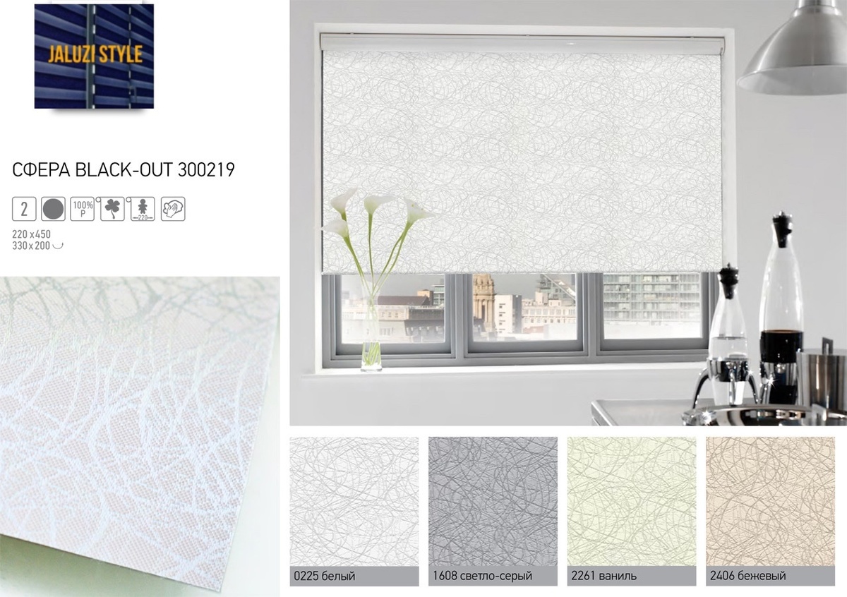 Свойства: полотно защищает от света и вредного влияния УФ-лучей, препятствует нагреванию помещения в летнее время, а в зимнее позволяет снизить потери тепла.