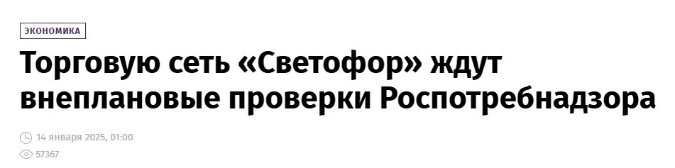 Как только страна вернулась к работе с новогодних каникул, появилась новость о том, что в сети "Светофор" начнутся внеплановые проверки Роспотребнадзора.