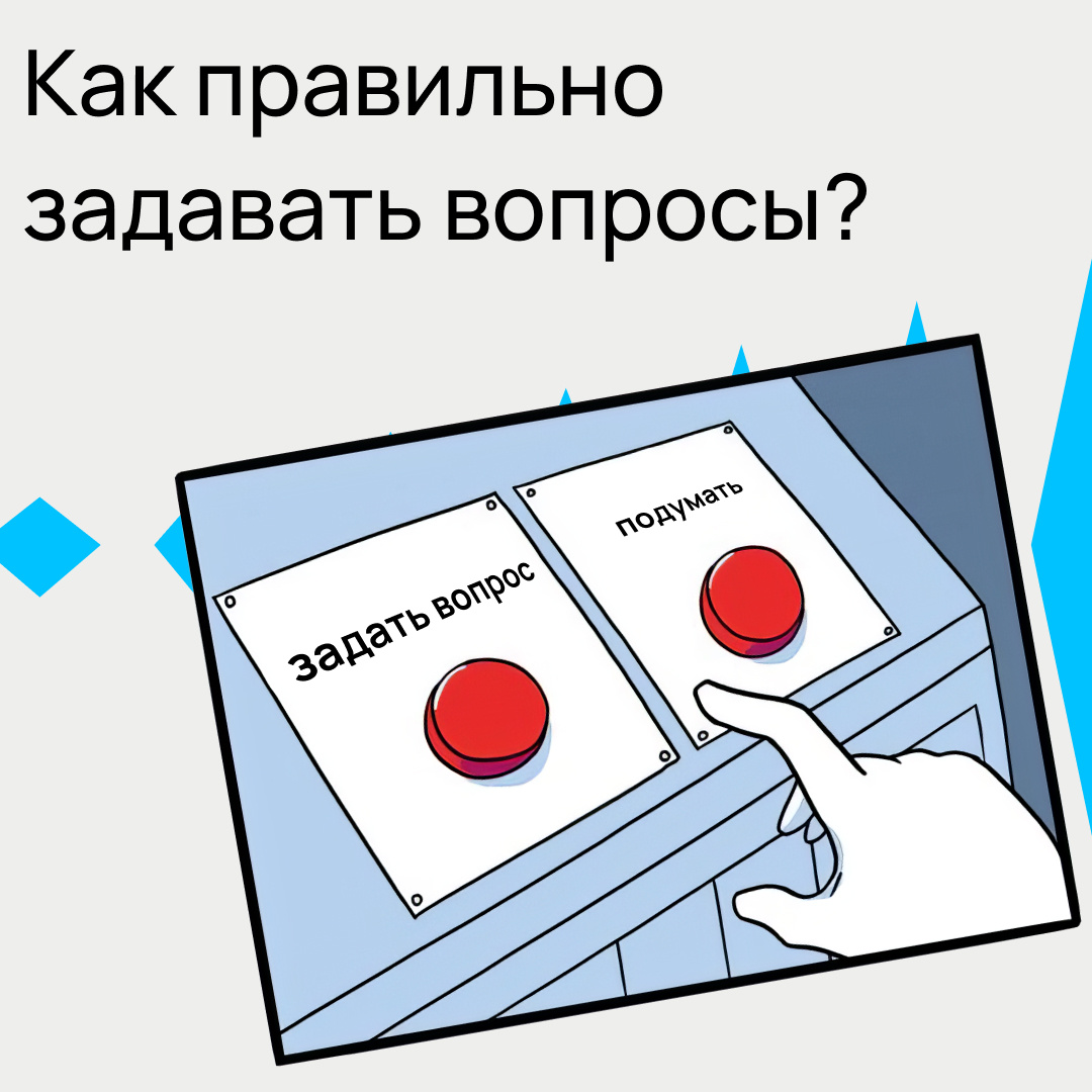 Задавать вопросы — важная часть процесса обучения, которая позволяет углубить знания. Правильно заданный вопрос поможет не только сократить время для получения ответа, но и получить его в наиболее полном и конкретизированном формате. В карточках делимся полезными советами.