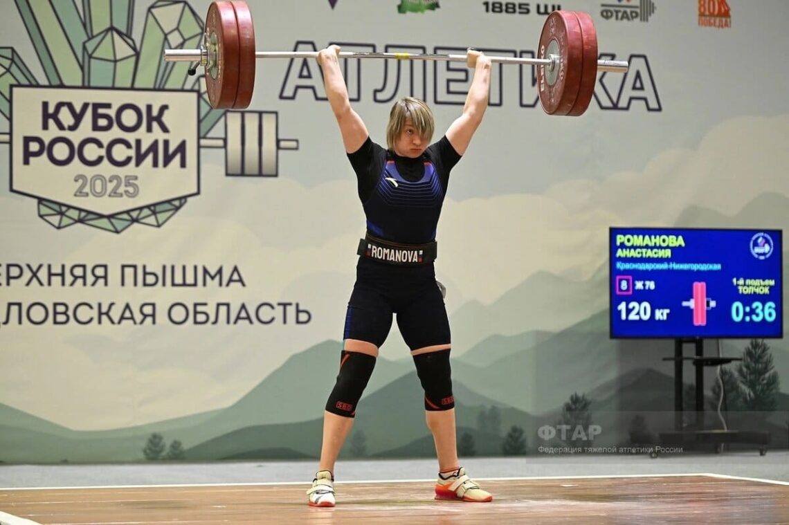 В этот раз всё произошло в Верхней Пышме, городе в Свердловской области, где проходил Кубок России по тяжелой атлетике среди женщин весовой категории до 76 кг. Двукратная чемпионка Европы и бронзовый призер чемпионата мира, заслуженный мастер спорта Анастасия Романова в первом виде двоеборья (рывок) подняла штангу с внушительным весом 110 кг и практически сняла все вопросы о победителе. Ближайшие соперницы – Ксения Баракина из Краснодара и Анна Скрипко, представляющая сразу два региона – Республики Чувашию и Кабардино-Балкарию, проиграли ей 15 и 18 кг соответственно. Во втором виде двоеборья (толчок) Анастасия упрочила свои лидирующие позиции, зафиксировав вес 125 кг. Чемпионские 235 килограммов в сумме двоеборья позволили дзержинской спортсменке завоевать престижный трофей. «В отсутствие главной соперницы у меня не было больших сомнений в победе. Но всё равно пришлось приложить немало сил и стараний. Кстати, за мою 22летнюю спортивную карьеру мне впервые вручили кубок такого большог