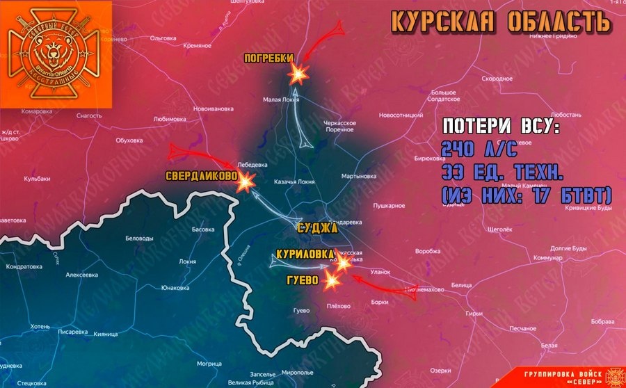В Саудовской Аравии начинаются переговоры представителей России и США, в том числе по ситуации с Украиной. Тем временем в приграничье Курской области ВС РФ ведут ожесточенные бои с вторгшимися в наш регион частями ВСУ. Группировка войск «Север» сообщает о текущей обстановке на фронте на утро 18 февраля. Город Суджу наши войска обходят со всех сторон. За минувшие сутки российские подразделения ВДВ, закрепившись в приграничном селе Свердликово, выбили противника из нескольких опорных пунктов в лесополосах восточнее и продвинулись в направлении райцентра Суджи, до которого по дороге немногим более 10 километров. На севере в селе Погребках идет наше продвижение, как и в Куриловке, где ВСУ выбиты с занимаемых позиций на западной окраине. Командование ВСУ ночью перебросило в Суджанское приграничье резервы — очередную роту «смертников» из насильно мобилизованных украинцев. Контратаки противника отражены, личный состав уничтожен артиллерией и операторами БпЛА. «Сразу с нескольких направлений С