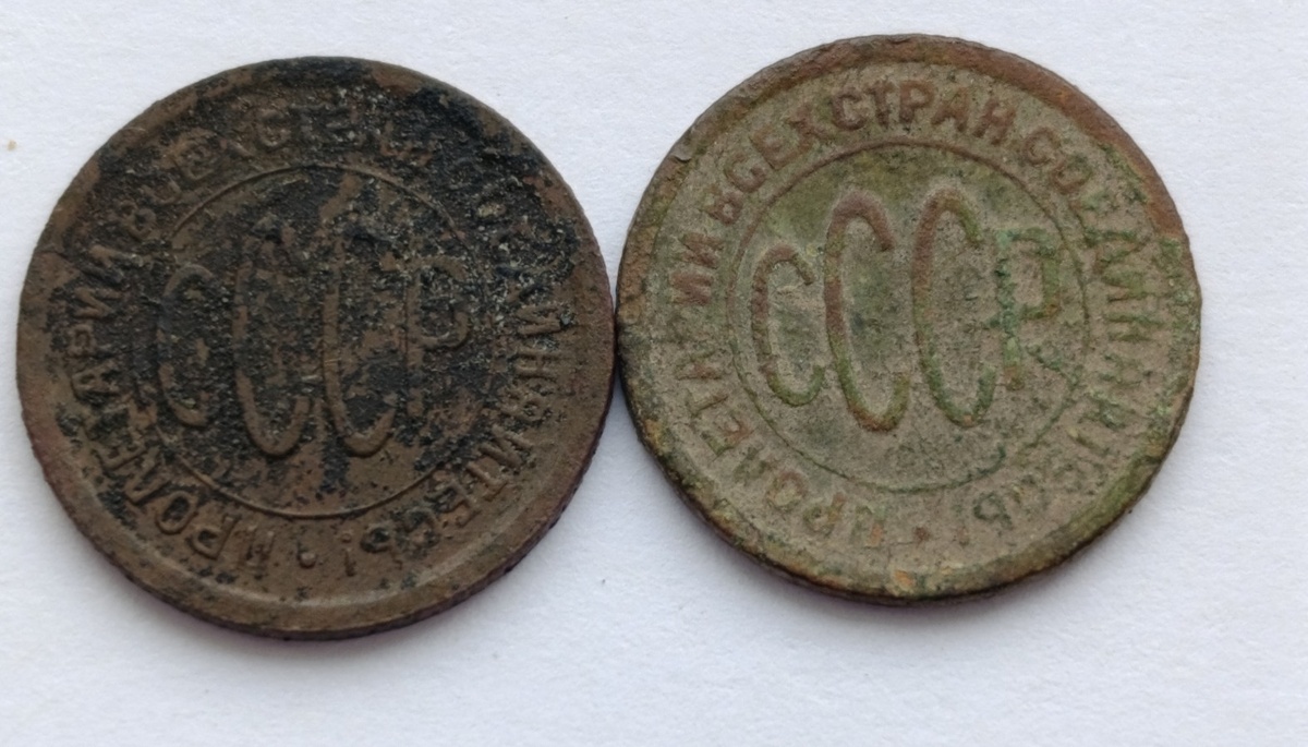Советские монеты номиналом в полкопейки особой невидалью не являются. У меня в закромах лежит штук десять. К сожалению, заветного 1928 года нет. Обратил внимание, что до двух полкопеечников так и не дошли руки. Появилась минутка, решил их помыть и почистить, чтобы точно знать, что они собой представляют. Вот так они выглядят: Самая обычная сохранность, которую обычно приобретают монеты, полежавшие в земле долгое время. Гниль и зелень присутствуют. Без последствий их не убрать. Всё же продолжительное залегание в очень неблагоприятных условиях делает своё дело. После определенных манипуляций получился вот такой результат (на фото монеты поменяны местами, если сравнивать с "до"): Всё очень предсказуемо. Обычно так монеты и выглядят после чистки. Чуть-чуть "затонировал". Если посмотреть в каталоги, то там чаще всего можно увидеть цену 300-600 рублей. Так в среднем и есть. Но за 300 будут продаваться монеты в полкопейки, имеющие такую сохранность, как на фото. А по 600 - эта цена дейс