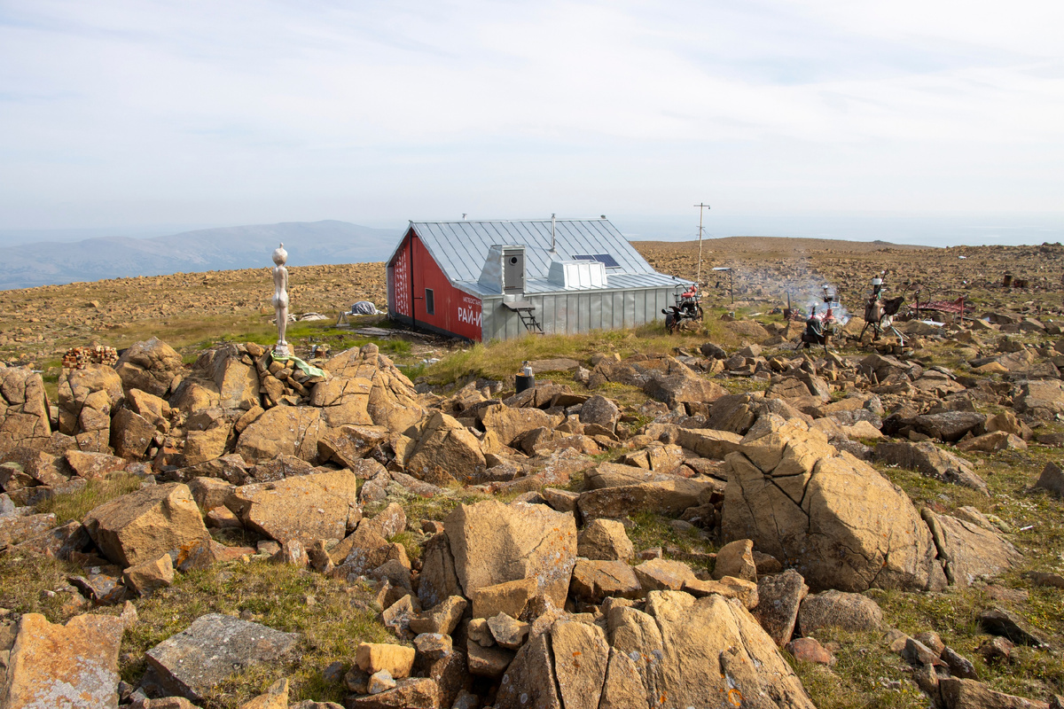 По пути, когда натыкались на полянки с ягодой голубикой, делали минутные привалы, буквально за несколько десятков секунд можно было набрать ладошку даров природы и насладиться ими. Ещё мы скатились по снежнику и в час дня добрались ещё до одного горного приюта: большой балок на санях, расположился у берега горной реки, ровно на половине пути от метеостанции до ледника. Для нас это стало сюрпризом, я не знал о существовании этого объекта. Здесь мы пообедали и продолжили путь.