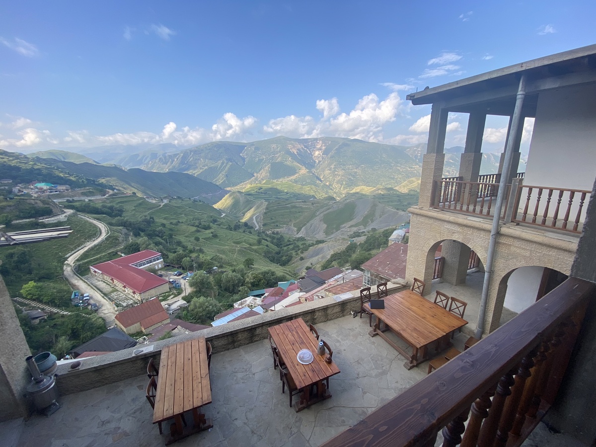 Ночёвка в отеле «Этнодом» в ауле Чох оставила массу впечатлений. Здесь мы смогли глубже почувствовать культуру и традиции Дагестана: от архитектуры и убранства номеров до утренней трапезы. На завтрак подали абрикосовую кашу с урбечом — блюдо, которое многим туристам кажется экзотикой, но на самом деле давно прижилось в горных районах благодаря своей питательности.