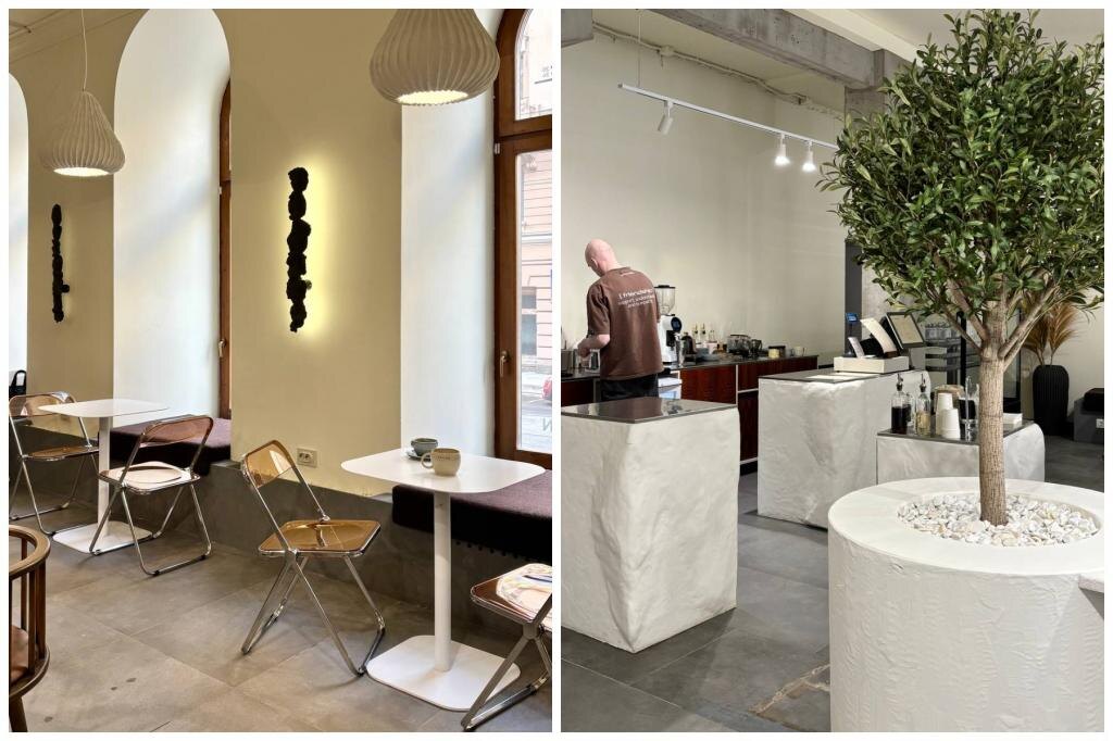 Средний чек: 1000 рублей Новая кофейня в районе площади «Пяти углов». Целый день здесь готовят 24 вида различных завтраков (350-800 руб.) и предлагают 14 добавок к ним: от авокадо до мороженого. Для сопровождения — кофеная классика: американо (190), фильтр (230) и капучино (290). Адрес: Газовая улица, 10, лит. 3