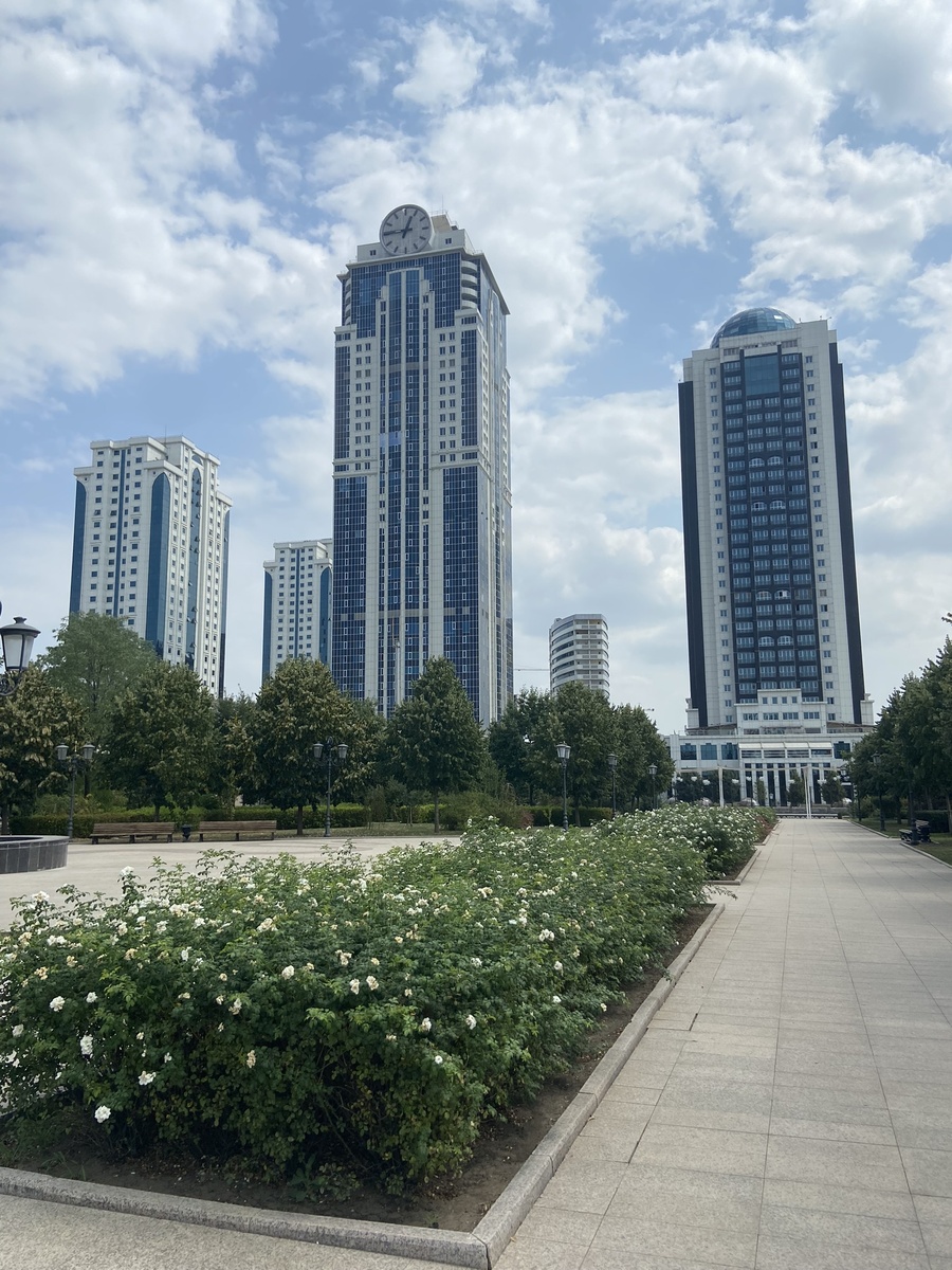Мы решили сделать остановку в центре города после долгой дороги. Посетили Центральную мечеть «Сердце Чечни», названную в честь Ахмата Кадырова, и прогулялись по прилегающему парку. Затем заглянули в «Грозный Молл», чтобы купить продукты в дорогу.