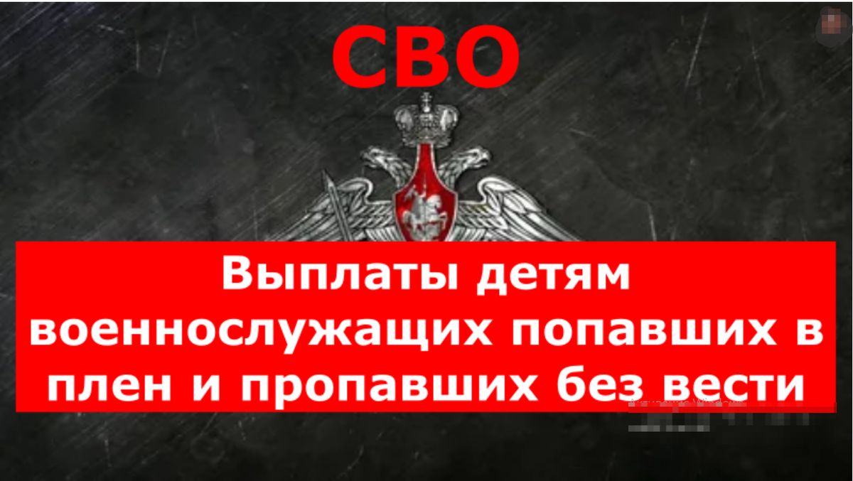 СВО. Выплаты детям военнослужащих,попавших в плен и пропавших без вести