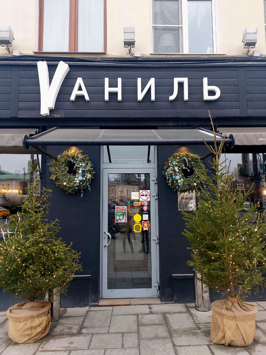 «Vаниль» – ресторан-долгожитель по московским меркам. Существует с 2001 года. Его ещё Фёдор Бондарчук открывал вместе с Аркадием Новиковым и Степаном Михалковым. Находится в самом начале улицы Остоженка около станции метро Кропоткинская в доме, где по слухам купила квартиру Орнелла Мути. Мы были там впервые. Обстановка и обслуживание великолепные. Официанты очень внимательные и доброжелательные. В зале красиво. Удобные столы и кресла. Цветок ириса в вазе на столе напомнил о скорой весне. Посадили нас за столик у окна с видом на Фридриха Энгельса. Был обед, я хотела супчик. Взяла уху из сибаса и сёмги. Уха нормальная, обычная. На четвёрочку. Сын заказывал бифбургер и роллы «Калифорния». И то же самое. Бургер на вкус нормальный, но не супер. Шёл в компании с картошкой и кетчупом. В кафе Hello Kitty бургер ему понравился больше. Роллы хорошие, но не вау. Накануне он был в ресторане «Рамен Тен», и роллы там были не хуже и в три раза дешевле. Самые вкусные по его мнению роллы были в