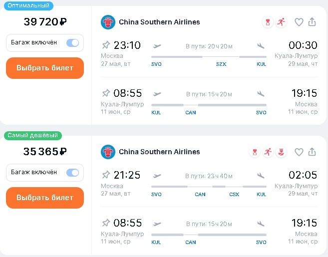 У китайской China Southern Airlines какие-то совершенно не реальные цены на билеты в Малайзию