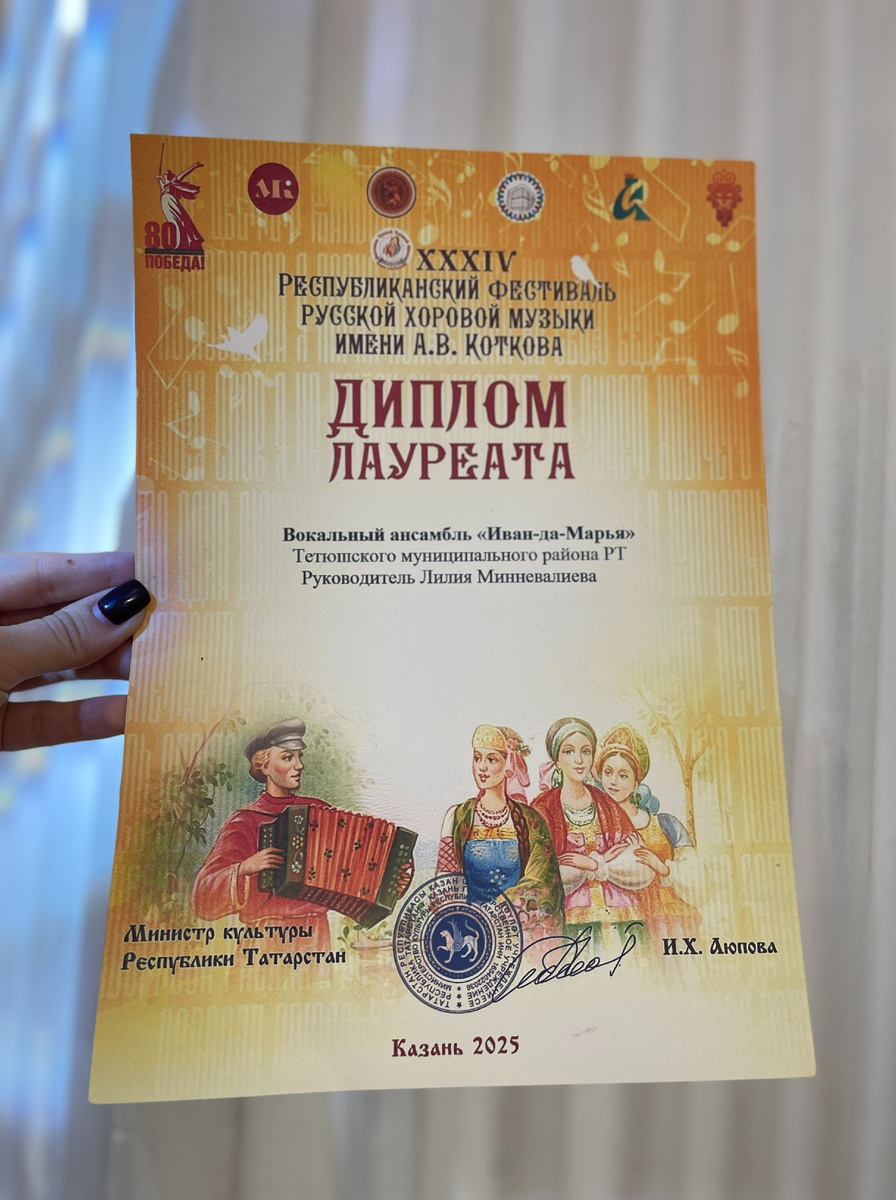 На днях в Казани в ДК им. С.Саид-Галиева прошел XXXIV Республиканский фестиваль русской хоровой музыки имени А. В. Коткова, в котором принял участие вокальный ансамбль «Иван да Марья» из Тетюш. Коллектив ансамбля «Иван да Марья» (руководитель Лилия Минневалиева, Тетюшский РДК) был награжден дипломом Лауреата. Напомним, с 2015 года фестиваль проводится в республиканском масштабе под эгидой Русского национально-культурного объединения РТ при поддержке Министерства культуры Республики Татарстан. В текущем году участниками фестиваля стали свыше 60 творческих коллективов из 20 районов Татарстана. Справка: XXXIV Республиканский фестиваль русской хоровой музыки имени А. В. Коткова — это значительное культурное событие, посвященное сохранению и популяризации русского хорового искусства. Фестиваль носит имя Александра Васильевича Коткова, выдающегося деятеля культуры и искусства, который внес значительный вклад в развитие хорового движения в России. Основные цели фестиваля: Популяризация русск