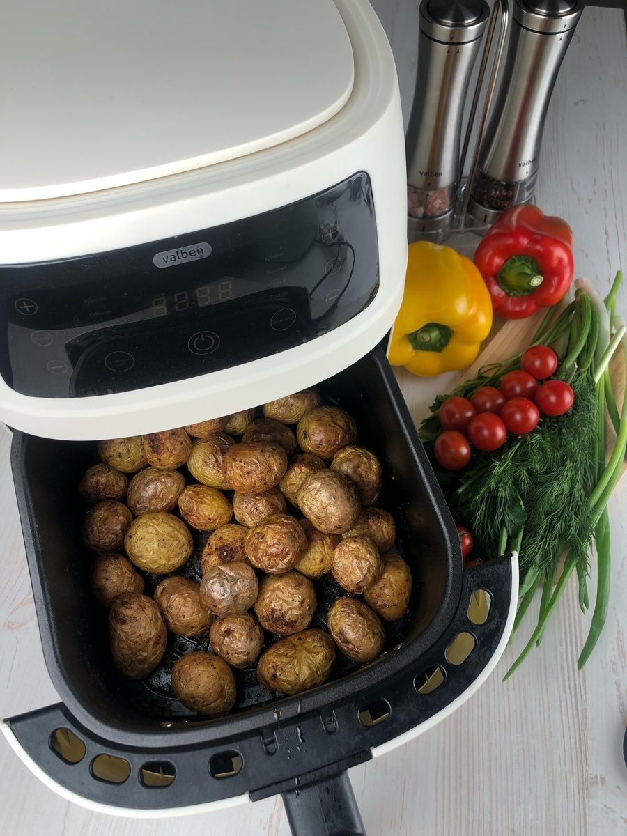 |Ингредиенты| (на 2 порции): - Картофель — 4–5 средних клубней (лучше сорта с низким содержанием крахмала, например, молодой картофель или красный). - Оливковое масло — 2 ст. л. - Чеснок — 2 зубчика (по желанию). - Соль — по вкусу. - Свежемолотый черный перец — по вкусу. - Паприка или куркума — ½ ч. л. (для цвета). - Свежая зелень — укроп, петрушка, зеленый лук (пучок). - Дополнительно: розмарин, тимьян (по желанию). |Пошаговый рецепт|: 1. Подготовка картофеля: - Тщательно промойте картофель. Если кожица тонкая (например, у молодого картофеля), можно не чистить. Нарежьте клубни брусочками или дольками толщиной 1–1,5 см. 2. Вымачивание (опционально): - Залейте нарезанный картофель холодной водой на 15–20 минут, чтобы удалить излишки крахмала. Это сделает картошку более хрустящей. Просушите полотенцем или бумажными салфетками. 3. Маринад: - В миске смешайте картофель с оливковым маслом, солью, перцем, паприкой/куркумой и мелко рубленным чесноком (или чесночным порошком). Доба