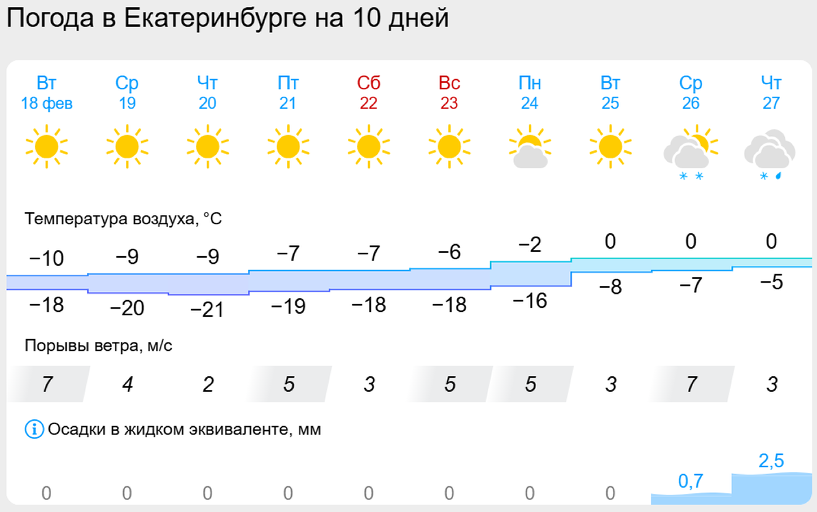 Предупреждение о неблагоприятных метеорологических условиях первой степени опасности будет действовать с вечера 18 февраля до вечера 25 февраля, сообщили в Уралгидрометцентре. Смог опасен тем, что содержит очень мелкие частицы (PM 2,5). При вдыхании они проникают глубоко в легкие и попадают в кровоток, что приводит к серьезным заболеваниям. Среди симптомов: Особую опасность смог представляет для беременных женщин, детей дошкольного возраста, пожилых людей, аллергиков, людей с хроническими заболеваниями дыхательной и сердечно-сосудистой систем. Рекомендации по спасению своего организма: Согласно прогнозу, скорость ветра в ближайшие дни составит 3–7 метров в секунду. Смог накрывал Екатеринбург с 6 по 11 февраля. Жители жаловались на запах гари и приступы удушья.