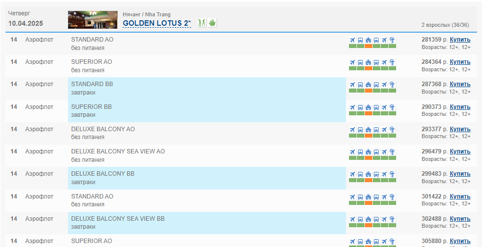Вчера увидела на сайте туроператора Библио Глобус, что рассчитаны туры в Нячанг на рейсах Аэрофлота и из Екатеринбурга. Недавно я писала о том, что появились прямые рейсы в Нячанг из Москвы, которых так долго ждали многие читатели. Ценник якобы должен отличаться от московского лишь на стоимость авиабилетов до Москвы и обратно. Давайте сравним цены. Как видите, одна и та же дата, один и тот же отель. Разница 36 054 рубля. Это должна быть стоимость билетов на 2 человек до Москвы и обратно. Посмотрим цены на билеты на сайте Аэрофлота, может выгодней будет купить билеты до Москвы и тур в Нячанг с вылетом из Москвы. В представленном скрине посчитаны следующие рейсы: туда Su 1401 в 13-55 с прилетом в Шереметьево в 14-25. Обратный рейс: Su 1406 25/04 в 21-30. Разница ощутимая и выгодней покупать именно турпакетом, в который эти авиабилеты входят по цене 36000 на двоих. Конечно, есть еще вариант не лететь из Екатеринбурга на Аэрофлоте и поискать билеты подешевле, прилететь в другой аэропорт и