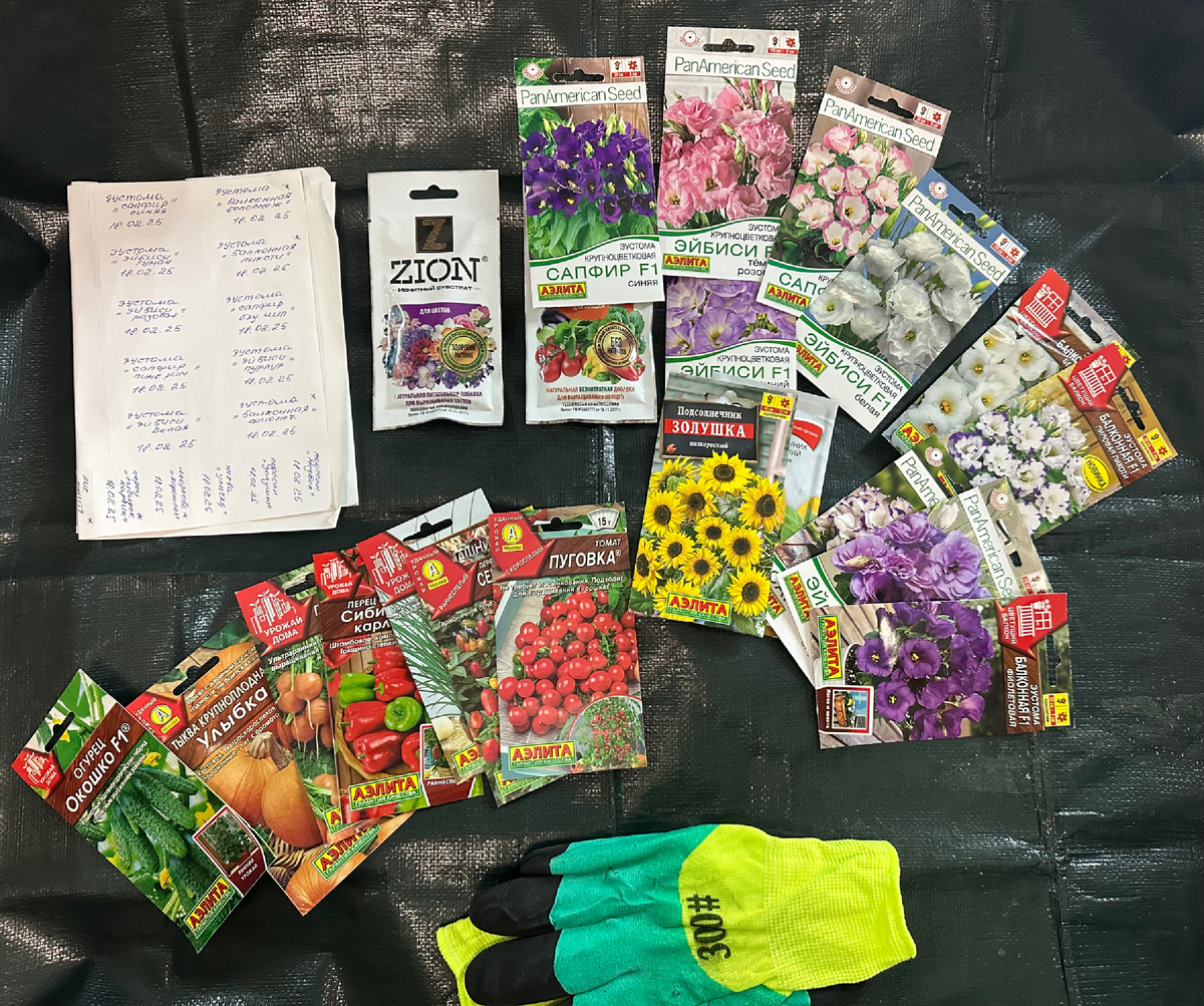 Решила поделиться с вами, как я решила сделать огород на окне. Буду показывать вам рост рассады, пикировку , развитие плодов (если они будут). Все будет в реальном времени. Сегодня 18.02.25 я решила посадить семена. Для работы мне понадобилось : Начала я с того, что подготовила брезент, на котором буду работать и добавки, грунта у меня было 10л После этого я хорошо замешала грунт с добавками , чтобы он был воздушный легкий и не марал руки 🫶 покажу еще визуальную состава, на фото ведерко с корой, но оно не понадобилась. После того , как я «замесила» землю, я рассыпала ее по емкостям и начала с помощью зубочистки раскладывать семена, перед этим лунки пролила водой, чтобы грунт стал влажный ( не сырой) . все семена вышли на 4 контейнера , эустомы растолкала по 5 семян 1 сорта в емкость, овощи в более крупные стаканы. У меня было два варианта емкостей, одни с крышкой другие без, которые без крышки надо закрыть пакетом. После посадки, я все обильно сбрызнула с пульверизатора и накры