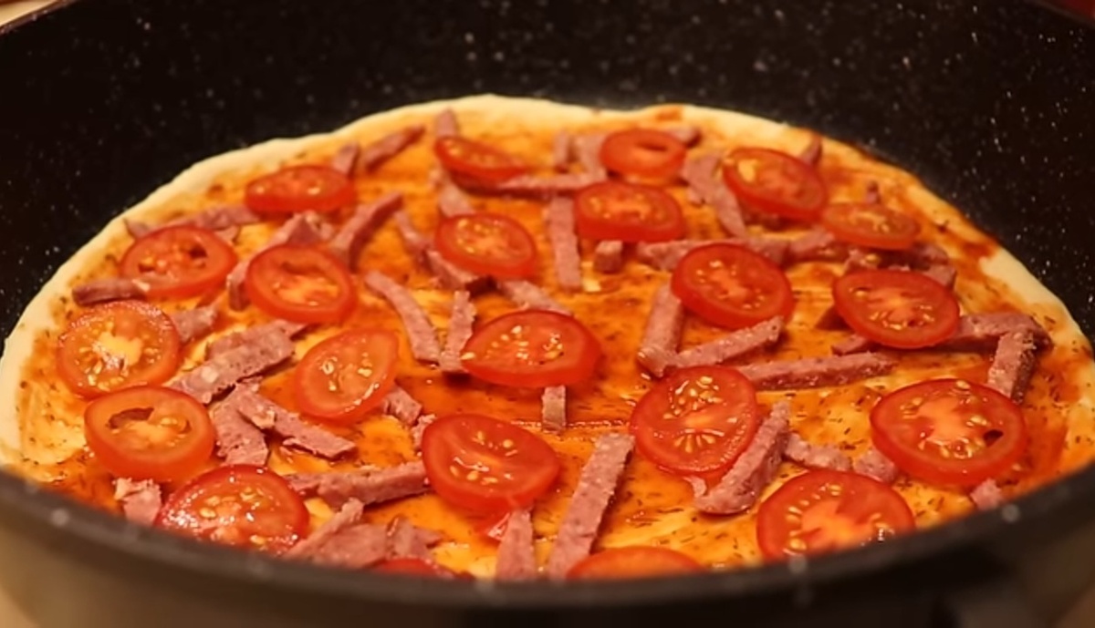 Пицца на сковороде – это быстрое и простое блюдо, которое можно приготовить без духовки. 1. Пицца на сковороде с жидким тестом Яйца – 2 шт. Кефир – 150 мл Мука – 150 г Разрыхлитель – 1 ч. л. Соль – ½ ч. л. Колбаса (соломкой) – 100 г Помидоры (кольцами) – 1 шт. Сыр (тёртый) – 100 г Оливки (нарезанные) – 10 шт. Прованские травы – 1 ч. л. Растительное масло – для жарки 2. Пицца на сковороде с дрожжевым тестом Мука – 200 г Вода – 100 мл Дрожжи сухие – 1 ч. л. Сахар – 1 ч. л. Соль – ½ ч. л. Растительное масло – 1 ст. л. Колбаса (соломкой) – 100 г Помидоры (кольцами) – 1 шт. Сыр (тёртый) – 100 г Оливки (нарезанные) – 10 шт. Прованские травы – 1 ч. л. Растительное масло – для жарки 1. С жидким тестом: 1️⃣ В глубокой миске взбейте яйца с кефиром, добавьте соль. 2️⃣ Всыпьте муку с разрыхлителем, перемешайте до однородной консистенции (как густая сметана). 3️⃣ Разогрейте сковороду, смажьте маслом и вылейте тесто. 4️⃣ Сразу выложите начинку: колбасу, помидоры, сыр, оливки и прованс