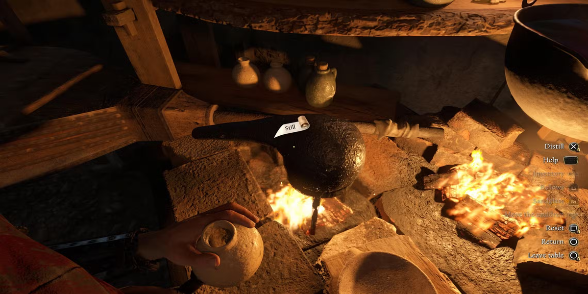 В Kingdom Come: Deliverance 2 процесс варки зелий требует внимательности и точности. Один из ключевых шагов в этом деле — дистилляция, которая используется при финальной обработке некоторых зелий. ⚠️ Важно: Дистилляция – не универсальный процесс! Она нужна только для зелий, где в рецепте указано "Finally, distill". 1️⃣ Закончите все остальные этапы варки зелья (подготовка ингредиентов, кипячение и т. д.).