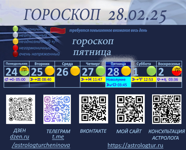 Сегодня мы встречаем последний день зимы с новолунием в Рыбах, что создает особую атмосферу. Этот день наполнен энергией, которая может помочь нам переосмыслить свои цели и желания. Утро до 11 часов (мск) может вызвать противоречия и сомнения. Возможно мы почувствуем, что наши амбиции столкнулись с реальностью, или какое-то досадное недоразумение, может подпортить нам настроение, принести разочарование. В это время могут возникнуть проблемы в делах, контактах. Но, не стоит впадать в уныние, потому как сегодня есть все шансы не только выровнять ситуацию, но успешно ее завершить. С 12 до 19 часов (мск) это время, когда мы можем проявить активность и решительность. Хороший момент для начала новых проектов, физической активности, а также взаимодействия с окружающими. Однако, не стоит слишком «напирать», излишняя импульсивность и давление могут привести к конфликтам. Вечер, с 18 часов (мск) и поздней ночи, может пойти по разным сценариям. С одной стороны – это хорошее время для решения серь
