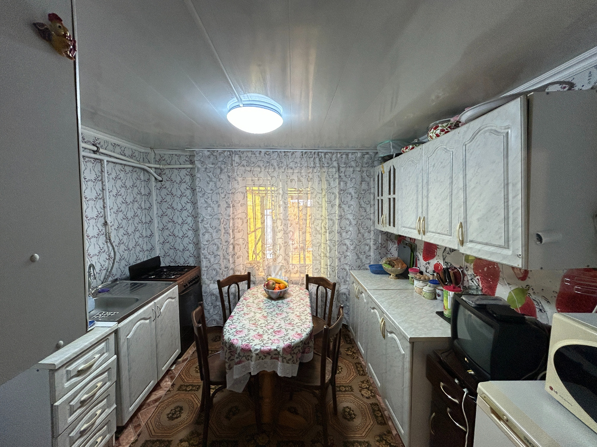 ОБ ОБЪЕКТЕ: Бревенчатая часть дома в статусе квартиры расположена на ленточном фундаменте общей площадью 58.9 кв.м. Жилая площадь 37.6 кв.м., Подсобная 21.3 кв.м. Планировка: холодная терраса, прихожая 7.6 кв.м., сан-узел раздельный ( ванная 3.1 кв.м., туалет 1.6 кв.м. ), кухня 9 кв.м. и три смежные комнаты ( 23.7 кв.м., 7.1 кв.м., 6.8 кв.м. ). Высота потолков - 2.7 метра. Имеется подпол. Окна ПВХ. Участок в районе 8-9 соток ( не оформлен ), огорожен комбинированным забором из металлопрофиля. При входе в дом сделана калитка и автоматические въездные ворота, имеется крытая стоянка для двух машин. На участке расположено два хороших железных сарая ( можно использ