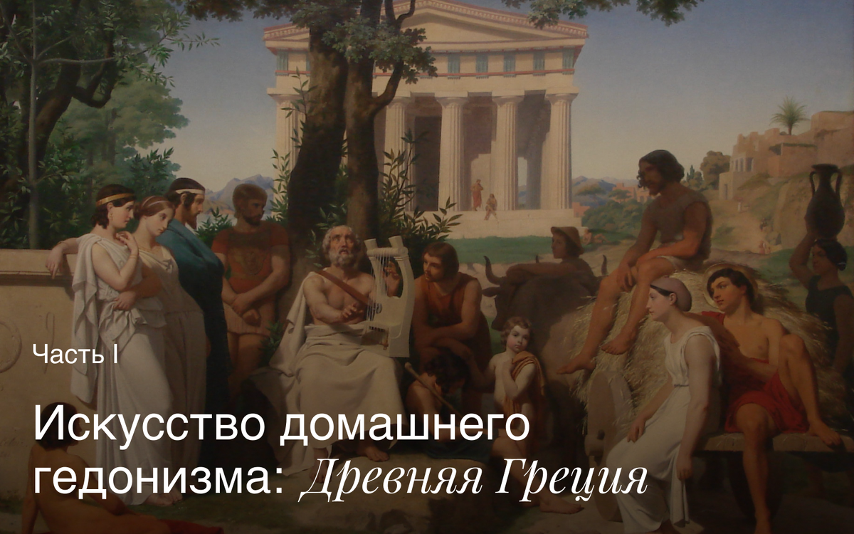 (Дисклеймер: Возможно, после прочтения этого текста вы остро захотите собраться с друзьями в большой гостиной и философствовать до поздней ночи) Что такое дом в Древней Греции? Это место, в котором хочется беседовать с близкими людьми, пировать, расслабляться и созерцать. Это палящее солнце и прохладная вода в бассейне, ароматный хлеб на столе и лёгкий шелест оливы над головой. В конце концов, каждый отдельный древнегреческий дом – это родина западной культуры. Уж где-где, а здесь люди точно знали, как получать максимум удовольствия от своего жилья. По крайней мере, те, у кого было для этого достаточно средств. Сегодня мы проживём один день состоятельного древнего грека. И попытаемся понять, в чём состояло его искусство домашнего гедонизма. Вы просыпаетесь и выходите на перистиль – внутренний двор с колоннами. Это традиционное место для встреч, отдыха и принятия пищи. Центральная часть отводилась под небольшой сад с цветами, кустарниками, оливой и виноградом. Только представьте, как вс