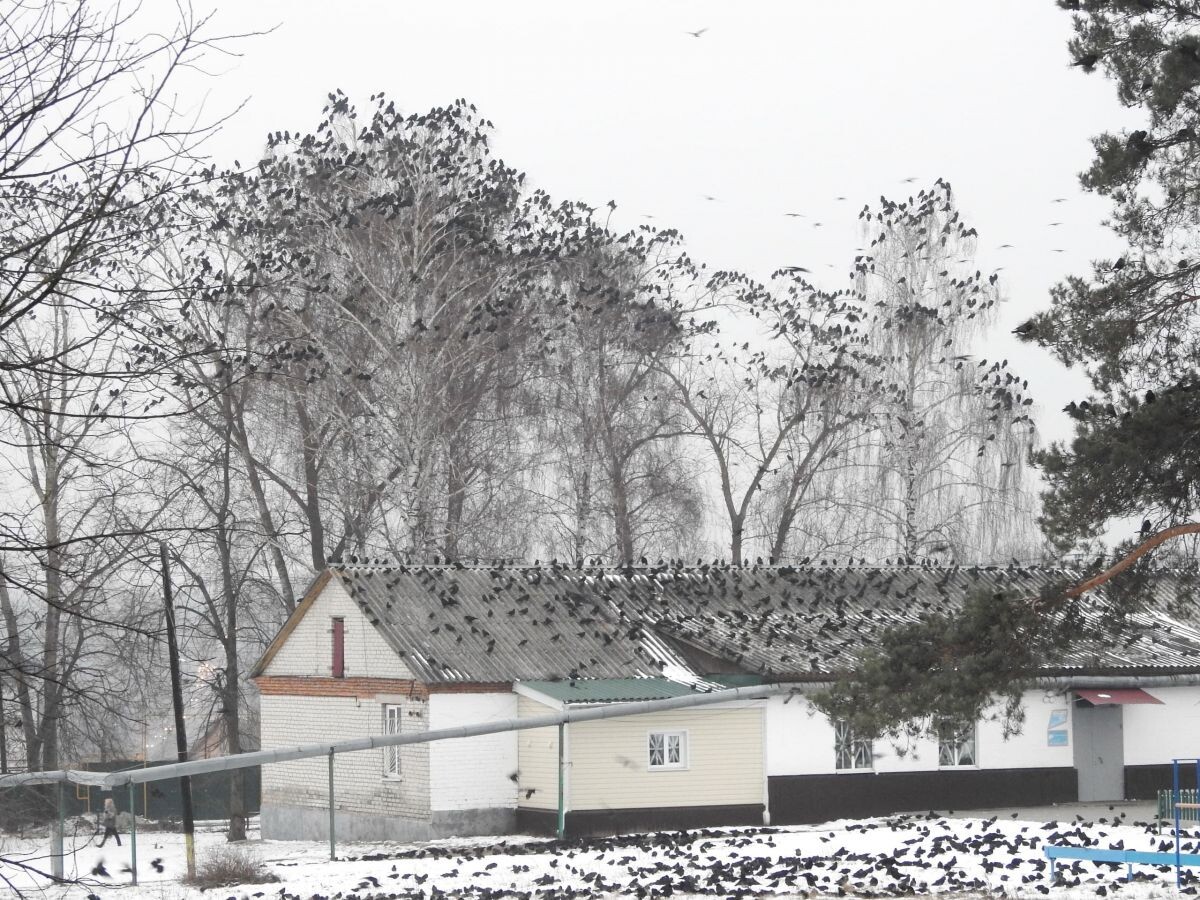 О «врановом движе» возле Моковской школе в Курском районе рассказало сообщество «Птицы города Курска»: