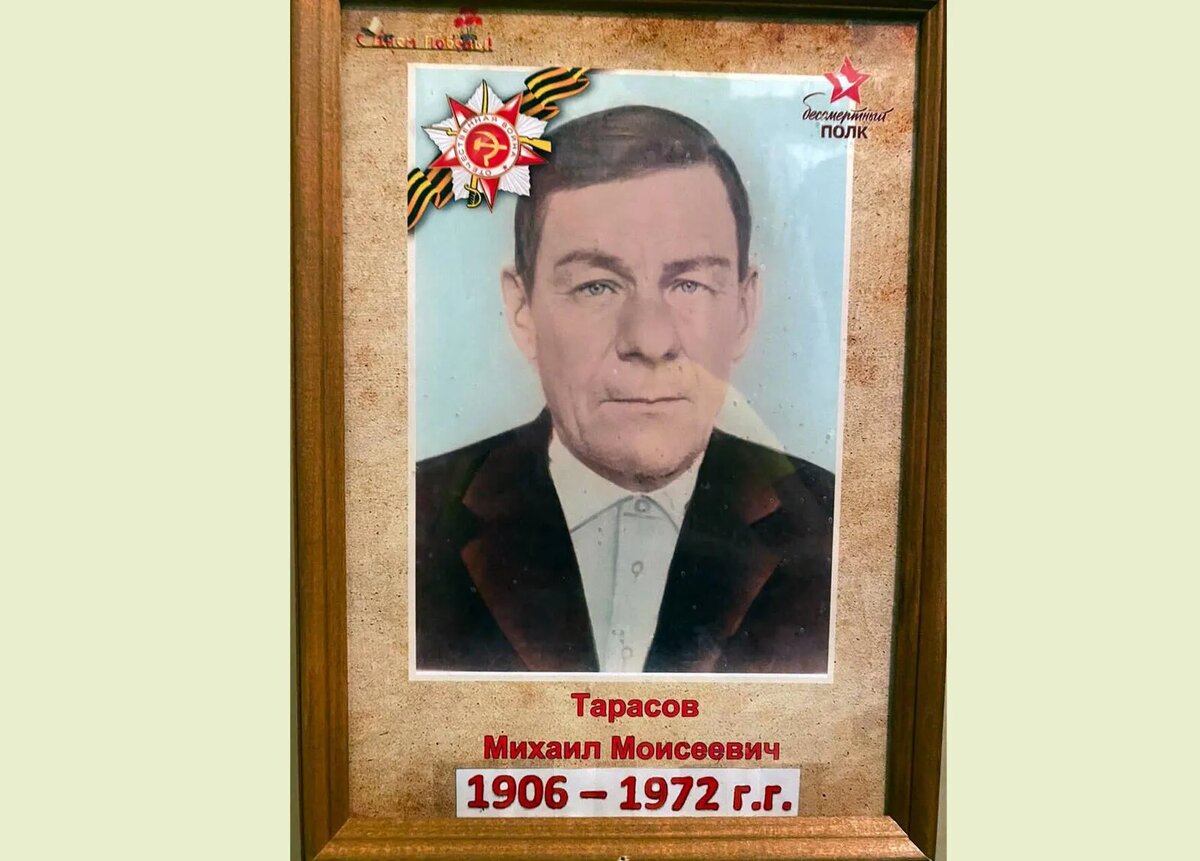 В рамках районного конкурса сочинений «Без срока давности» много работ было представлено в тематическом направлении «Моя семья в годы Великой Отечественной войны». Одну из них, ученица Натальевской средней школы Арина Полякова посвятила своему прапрадеду Михаилу Моисеевичу Тарасову. В нашей семье свято хранятся воспоминания о моем прапрадедушке Михаиле Моисеевиче Тарасове. Существует семейная притча, которую рассказывал дедушка Миша, когда вернулся с фронта. Когда началась Великая Отечественная война, мой прапрадед добровольцем пошел на фронт. На дворе сельсовета его жена Зоя Михайловна потихоньку попросила надеть иконку, чтобы она уберегла воина от пули, от взрыва… Прапрадед стал отказываться. Но прапрабабушка очень просила, убеждала и плакала….И прапрадед не выдержал такого напора, согласился взять с собой, спрятав иконку в карман. Потом он вспомнил, что никак не мог надеть её, всё носил за пазухой. Но вот однажды ему приснился сон, в котором он шел по лесу. День был ясным, солнечны