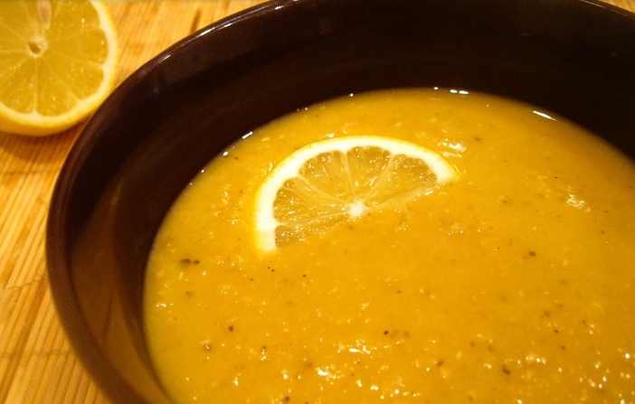 Ингредиенты: - 2 стакана чечевицы - 4 стакана воды - 1 средняя луковица - 1 морковка - соль - перец - 1 ч. л. муки - 1 ч. л. томатной пасты - 2 ст. л. растительного масла - 1 ч. л. кумина (зиры) - 1 ч. л. аджики - 1 ч. л. молотой паприки - 1 лимон Приготовление: Измельчите лук и обжарьте его на масле до прозрачности. Посыпьте куркумой, добавьте ложку муки и продолжайте жарить на медленном огне, пока не появится приятный ореховый аромат. Затем добавьте на сковороду крупно натертую морковь, томатную пасту, кумин и перец. Промойте чечевицу и соедините ее в кастрюле с обжаренными овощами. Залейте водой и доведите до кипения. Снимите пену, уменьшите огонь, накройте крышкой и варите около 15-20 минут. Используйте блендер, чтобы превратить суп в пюре. При необходимости добавьте соль. Выжмите половину лимона в суп. В разогретой сковороде смешайте немного масла с аджикой и паприкой — эта ароматная заправка подается к супу в соуснике. Отличным дополнением будут белые гренки или обычные тосты. И