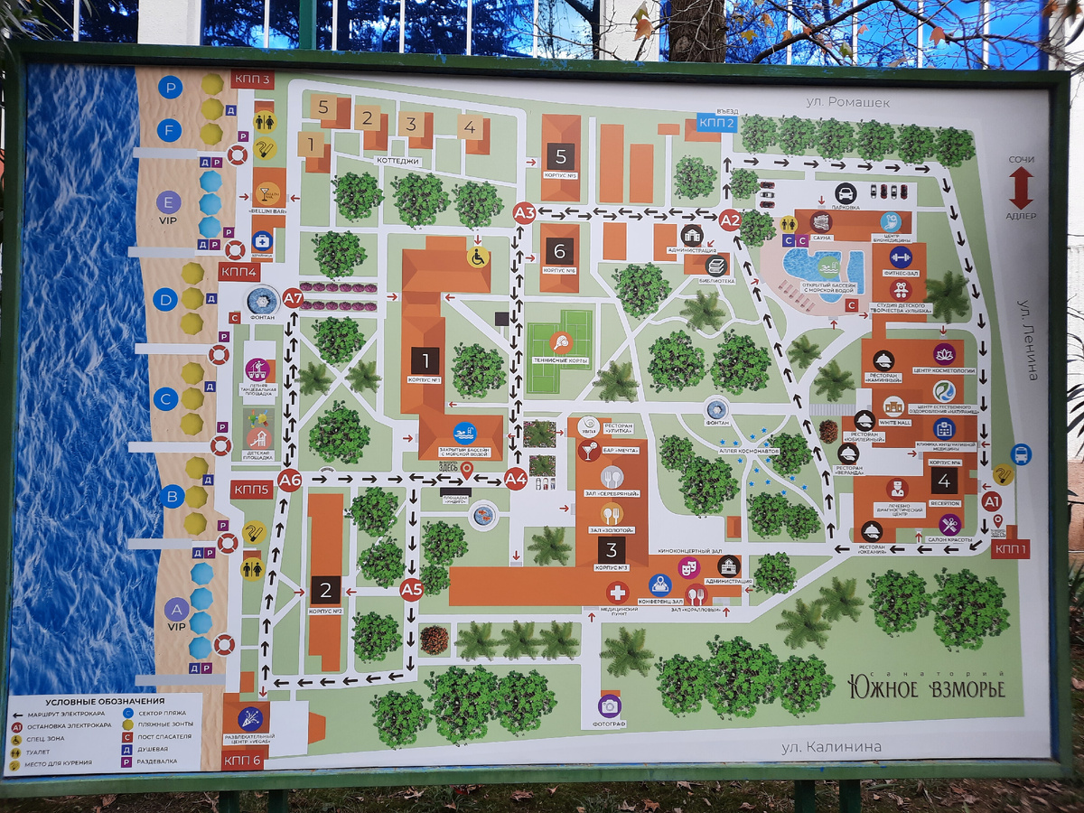 Продолжаю рассказывать о зимнем отдыхе в Адлере. Когда я ещё только планировала поездку в Адлер на новогодние каникулы в 2021/22 г, сестра сказала, что её подруга тоже туда едет, но в санаторий "Южное взморье". Так я впервые услышала это название. Зайдя на их сайт, я сразу поняла, что по такой территории я обязательно должна прогуляться. И как только я очутилась в Адлере, стала выяснять, как же мне попасть на территорию санатория. Ведь это был ковидный период и вход везде только по пропускам. Но где-то я прочитала, что за 100 рублей на территорию пускают. Решила, что поеду, а там, как получится. А дело было 31 декабря и получилось очень даже замечательно 👏. На проходной было целое столпотворение вновь прибывших, которые спешили скорее заселиться. Вот в этой суматохе я под шумок и просочилась 🤫. А попав на территорию - скорее поспешила вглубь парка. А территория немалая - 11 га! А там уж спокойно гуляла, восхищаясь разными корпусами и виллами, аллеями, скульптурами, декоративными эл