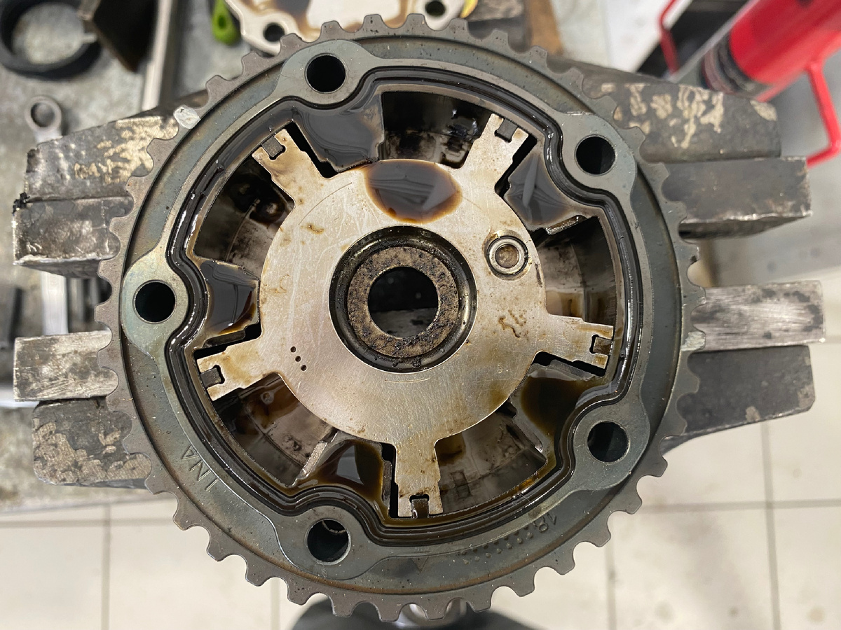 Проблемы с фазами на LADA VESTA 1.8. Сразу скажу, что эта проблема не была решена. Компанией занимающейся перепродажей автомобилей была приобретена Лада Веста с двигателем 1.8. Горел чек и билась ошибка по выпускному распредвалу. Со слов владельца история была такой. Во время поездки автомобиль заглох на ходу. После запуска загорелся чек. Первые предположения, убежали фазы. Шестерня и фазовращатель на распредвалах этого двигателя крепятся на конус и возможно недотянутое соединение провернуло. На удивление всё оказалось на своих местах. Фазы были выставлены повторно. Следующим шагом была чистка клапана управления фазовращателем. Результата не дало. Клапан был заменен на новый и так же 0 результата. Осталось винить только сам фазовращатель! Визуально проблем обнаружено не было. Естественно был заказан новый фазик почти за 90 тр. Продуты перед установкой все каналы и заменено масло. Давление масла было в допустимых пределах. Стало немного лучше, но чек так и продолжал выбивать через не
