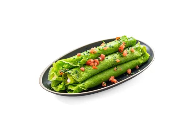 Один из самых интенсивных природных зеленых красителей — это шпинат. Чтобы хорошенько прокрасить блины, нужно взять 150 грамм шпината, сделать из него пюре, соединить с мукой и яйцом и превратить все это в тесто жизнерадостного зеленого цвета. Молоко 500 мл Куриное яйцо 2 штуки Пшеничная мука 200 г Шпинат 150 г Растительное масло 30 мл Сыр рикотта 200 г Помидоры 2 штуки Адыгейская соль по вкусу Петрушка по вкусу Соль по вкусу