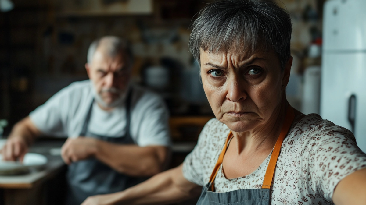 "Что случилось? Да то, что я устала! Устала быть твоей кухаркой! У меня тоже работа, между прочим. А ты теперь на пенсии - мог бы и помочь по хозяйству".