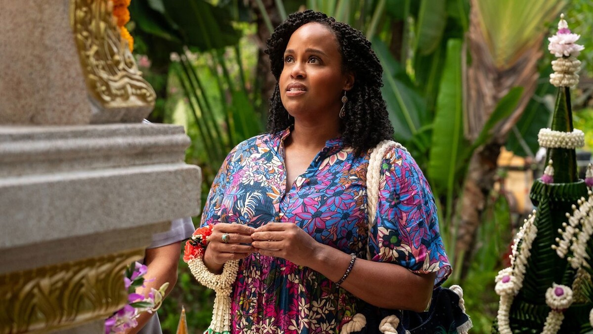 В этот раз флешфорвард гораздо мрачнее предыдущих. Да, у нас все еще есть тело. Но вместо секунды обнаружения во втором сезоне или отстраненного рассказа в первом, третий сезон открывается сценой медитации, прерываемой стрельбой. Стекла спа-центра обрушиваются, гость курорта пробирается сквозь листву в надежде, что с его матерью все в порядке. Если забыть о том, что мы смотрим «Белый лотос», то некоторые кадры с растительностью, переходящей в воду под звуки выстрелов, напоминают сцены из фильмов о теракте на острове Утойя. Это действительно жутко. Но Уайт успевает вернуться к своему саркастическому настроению, заставляя парня (это сын Белинды) в страхе подбежать к статуе Будды и начать молиться Иисусу.