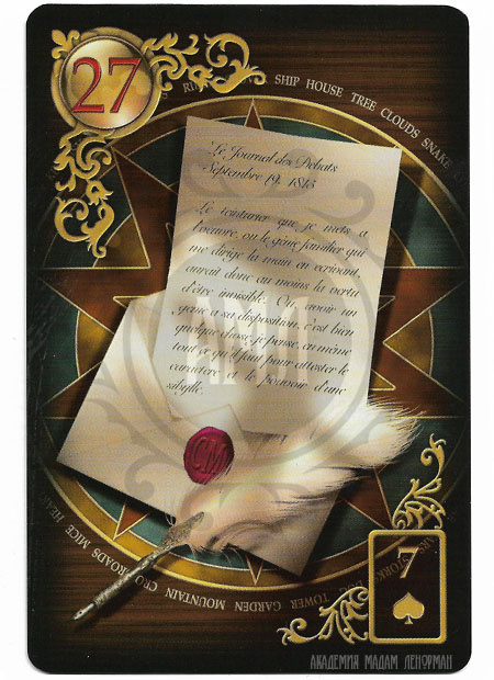 Карта ПИСЬМА может символизировать любой официальный документ, повестку, предложение заключить договор или извещение о его расторжении (в зависимости от соседних карт).