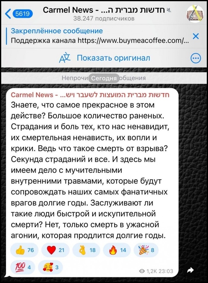 Такой вот скриншот-комментарий прислали мне в почту мои читателя на события 17-18 сентября 2024 в Ливане. (О событии, которого будто бы и не было?) 17 и 18 сентября в Ливане к уничтожению членов «Хезболлы» силы Израиля подошли весьма креативно. Произошел массовый взрыв пейджеров. Пострадало приблизительно четыре тысячи человек. Позже ответственность за операцию с пейджерами взял на себя премьер-министр Израиля Нетаньяху. «Если отлететь (телепортироваться) в другую галактику и посмотреть оттуда, из далёкого далека, на события и процессы, которые происходят на нашей маленькой планетке Земля (по экватору её окружность составляет всего-то 40 075, 017 км) — какой будет первая мысль, которая придёт на ум? Всё верно: это не имеющая разумных объяснений глупость — иметь на столь не большой по размеру территории Земли такое количество государств, такое количество президентов, такое количество правительств, такое количество вооружённых до зубов армий, и такое количество амбиций и претензий одн