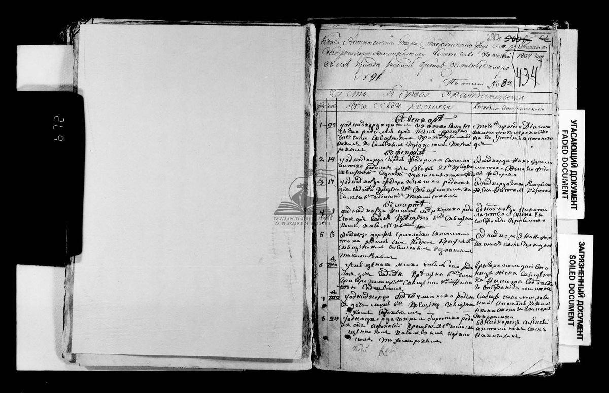 Метрическая книга станицы Расшеватской, 1804 год (Ставропольский край)