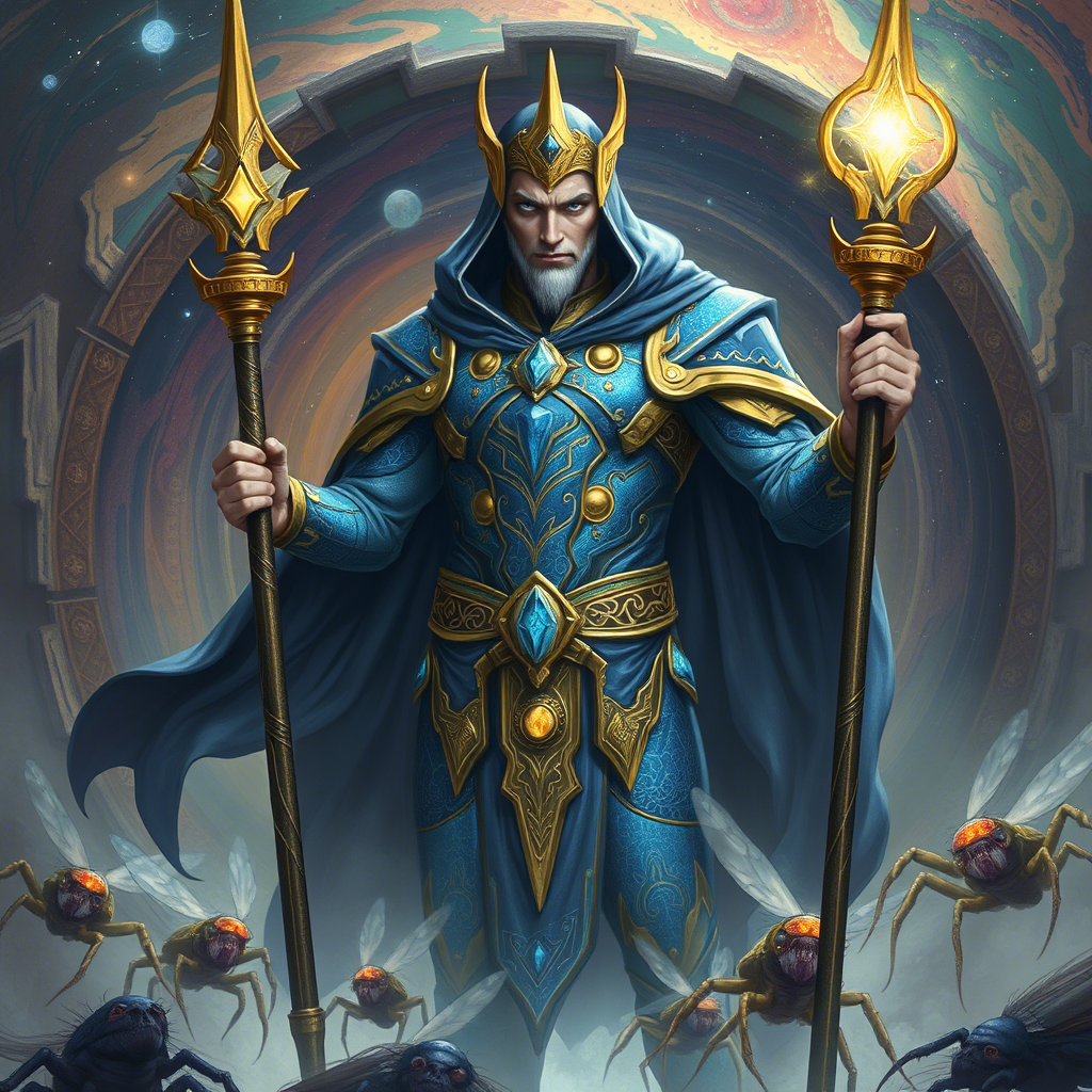 🌌 В таинственных залах древнего храма, где время остановилось, и пространство извивается подобно живому существу, стоит великий маг по имени Гравитон. Его имя шепчут в закоулках вселенной, как символ непоколебимой силы и безграничной мудрости. Но что скрывается за этим могущественным воином света и тени? Давайте погрузимся в его историю и раскроем тайны его пути. Гравитон родился в эпоху, когда миры были связаны тонкими нитями судьбы, а магия текла повсюду, словно река. С ранних лет он чувствовал, что призван к чему-то большему, чем обычная жизнь. Его наставниками стали древние духи, которые обучали его искусству управления энергией миров. 📜 Его два посоха, украшенные золотыми навершиями, были не просто инструментами — это были ключи к балансу вселенной. Каждый из них имел свою собственную душу, способную отзываться на мысли своего хозяина. Один посох символизировал порядок, другой — хаос, и вместе они создавали гармонию. ⚖️ Однажды Гравитон столкнулся с загадочной угрозой. В воздухе