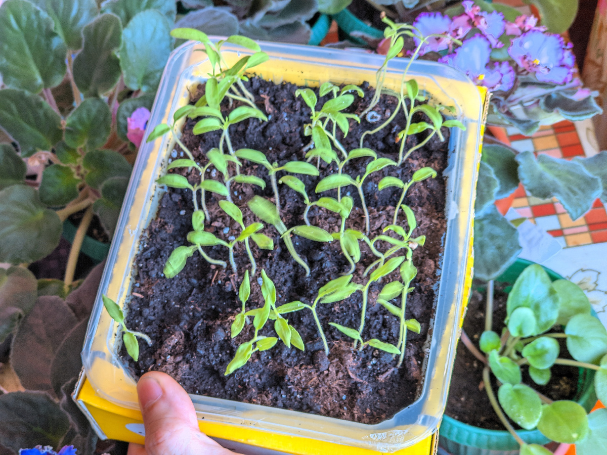 Чтобы рассада не вытянулась в условиях недостаточной освещённости, есть вариант: подсвечивать круглосуточно 10 дней от момента всходов. Потом делать ночь на 5-6 часов. Проверено неоднократно на большом количестве рассады разных культур. Даже виола, посеянная в конце января, не вытягивается при температуре 23-25°, хотя все знают, как она любит вытягиваться!