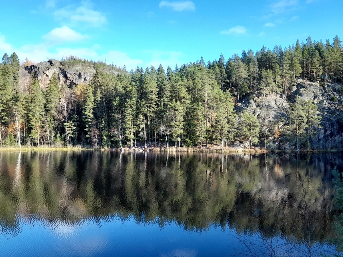 Треугольное озеро - одно из самых красивых мест Ленинградской области. Оно очень популярно у любителей скалолазания, потому что здесь находятся самые высокие скалы в нашем регионе. В октябре 2023 года мы отправились сюда в третий раз, чтоб посмотреть на скалы после первых заморозков. Был красивый солнечный день, и природа была особенно прекрасной. В этой статье я поделюсь с читателями красотами природы Карельского перешейка. И уверен, что если вы тут еще не были, то обязательно захотите здесь побывать Добраться сюда своим ходом невозможно. Мы арендовали автобус. Оставили его на полянке в двух километрах от озера, так как дальше дорога совсем разбитая. И пошли пешком. Вышли на ту часть озера, что ближе к дороге Идем к скальному массиву Поднялись на вершину Фотосессия Вид с высоты На воде уже видно тонкую корочку льда Гуляем по скале Суровый пейзаж Чаепитие на высоте Здесь видны два озера - Треугольное и Новосельское. Видно, как сильно соседнее озеро выше уровнем. Они соединяются руч